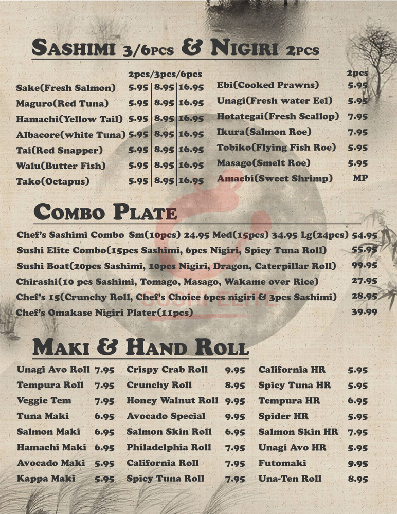 The menu features an array of mouthwatering sushi options, including the 15 Pieces Combo and the indulgent Sushi Elite Boat, which showcases expertly crafted nigiri and sashimi. Each dish bursts with fresh flavors, earning rave reviews from patrons—many praising the beautiful ambiance and attentive service.